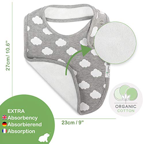 Budding Bear Lätzchen Baby (5er-Pack) – Vorderseite aus 100% Bio-Baumwolle, Absorbierende Frottee Rückseite & 4 Verstellbare Nickelfreie Druckknöpfe – Latz Baby Lätzchen Mädchen & Jungen – Grau