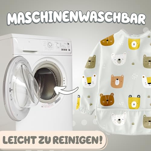 Nombear ® Lätzchen für Baby mit Ärmel – Abwaschbare Lätzchen mit Ärmeln, Wasserdichtes Baby Lätzchen für Baby Essen, Ganzkörper Lätzchen für Baby, Ärmellätzchen für Baby, Beikost Baby Zubehör