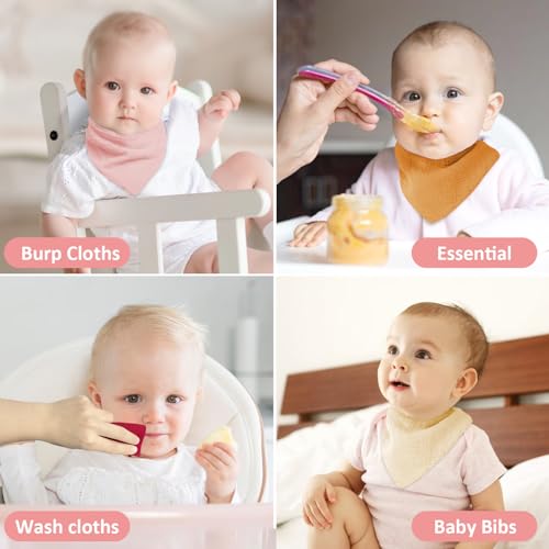 TOFFCAEA 10 Stück Lätzchen Baby Absorbierende Dreieckstuch, Vier Stockwerke Weiche & Absorbierende Musselin Halstüch, mit Verstellbares Druckknopf, für Jungen, Mädchen, Unisex