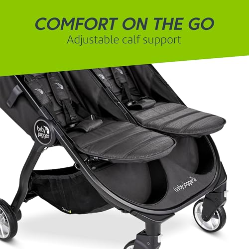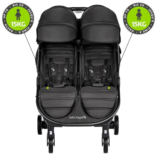 Baby Jogger City Tour 2 Double Geschwisterwagen Zwillingswagen für Reisen | leichter, zusammenklappbarer und tragbarer Zwillingsbuggy | Pitch Black (Schwarz)