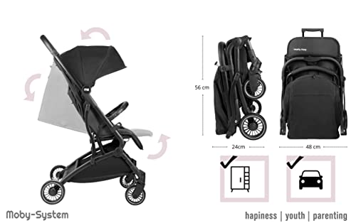 Moby-System Kinderwagen leicht, Kinderwagenset, Kombikinderwagen, Babyschale, Buggy mit des Koffers, für Kinder bis 15 Kg Flugzeugtauglich, Fahrzeugstauglich, großer Einkaufskorb, Schwarz