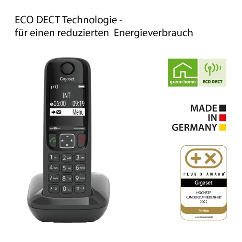 EIN ZUVERLÄSSIGER BEGLEITER – Das Gigaset AS690 überzeugt mit einem großen, kontrastreichen Display und sorgt dank extra großer Ziffern-Anzeige im Wählmodus für beste Lesbarkeit. Nur in Deutschland kompatibel – Mehr Informationen auf der Gigaset Homepage.