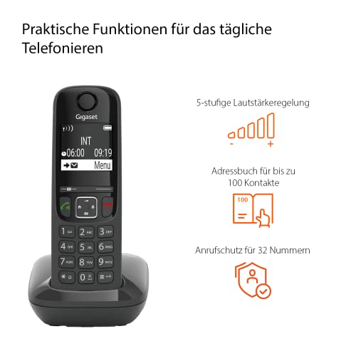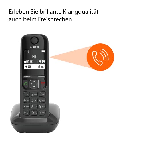 ![Gigaset AS690 - Schnurloses DECT-Telefon - großes, kontrastreiches Display - brillante Audioqualität - einstellbare Klangprofile - Freisprechfunktion - Anrufschutz, schwarz [Deutsche Version] – Bild 3](https://m.media-amazon.com/images/I/41LKLL5vqdL.jpg)