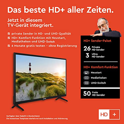 BEEINDRUCKENDE BILDER – Erleben Sie Inhalte in HD Auflösung und testen Sie für 6 Monate kostenfrei und ganz unverbindlich das HD+ Paket (SAT-Empfang benötigt). Der TV unterstützt außerdem HDR 10 inkl. HLG sowie Super Resolution & Micro Dimming und liefert damit besonders kontrastreiche Aufnahmen mit einer natürlichen Farbgebung und beeindruckender Detailschärfe. Ihr Fernseherlebnis wird dadurch noch realistischer.