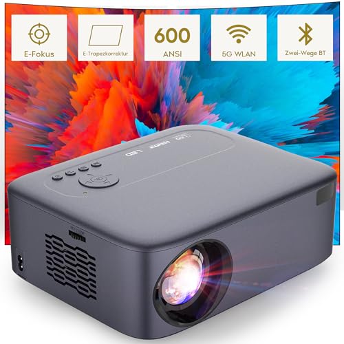 [Elektrischer Fokus/Trapezkorrektur/Zoom] Beamer, Beamer 4K Unterstützt 5G WLAN Zwei-Wege Bluetooth, 600ANSI Native 1080P Heimkino Videoprojektor, Kompatibel mit Smartphone/TV-Stick/Laptop/Konsole