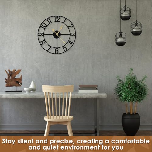 Bexdug Large Rustic Wall Clock, Oversized Wall Clock, Minimalist Decorative Large Wall Clock, European Industrial Vintage Wall Clock with Roman Numerals, Silent, Wrought Iron Clock