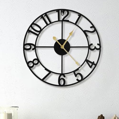 ➜Rustikaler Charme: Ohne Glasabdeckung vermittelt diese übergroße Wanduhr einen Used-Look im Vintage-Stil, der sich perfekt für jedes Interieur im Bauernhaus- oder Industriestil eignet. Der 2 cm dicke Metallrahmen verleiht dem schlichten, dreidimensionalen Design Tiefe, während die goldfarbenen Zeiger einen klassischen Touch verleihen.